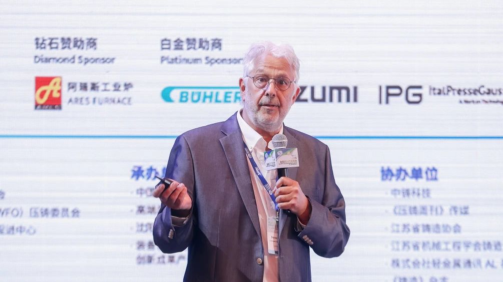 會議現場 金陵鑄夢,盛會啟航 中國機械工程學會鑄造分會理事長、中國機械科學研究總院集團有限公司首席科學家、世界鑄造組織主席婁延春先生出席開幕式并致歡迎辭。他對與會嘉賓的到來表示熱烈歡迎,對所有合作伙伴表示衷心感謝。他表示,當前,全球制造業格局加速重構,綠色化轉型帶來新能源汽車爆發式增長,驅動輕量化技術迭代。2023年,中國鎂合金壓鑄件市場規模同比增長32%,其密度較鋁合金降低30%,抗拉強度提升20%,在蔚來ET5車身、華為智能座艙等產品中,鎂合金正以“更輕、更強、更低碳”的特性,開辟千億級新市場。本屆會議以“鏈動全球壓鑄”為目標,旨在加速推進前沿工藝革新。如何將鎂合金材料成本降低至鋁合金的1.2倍以內?如何實現萬噸級壓鑄機能耗下降30%?如何構建覆蓋設計-制造-回收的全生命周期碳足跡模型?為行業提供更高效、更低碳的解決方案;同時,強化全球產業鏈協作,從東南亞到歐洲、再到北美,中國壓鑄企業正以技術出海、產能共建等方式,與全球伙伴共享發展機遇。我們堅信,唯有開放合作,才能攻克共性技術難題;唯有協同創新,才能引領綠色智造浪潮。