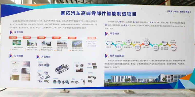 ![]() 近日,從江蘇無錫市錫山區獲悉,晉拓汽車高端零部件智能制造項目目前廠房主體已封頂,計劃8月份竣工投產。項目由上海晉拓金屬制品有限公司投資建設。
