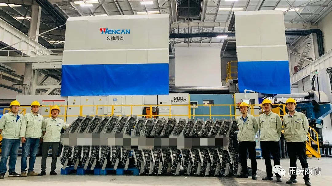 9000T壓鑄島一體化后地板在天津成功下線 同時,文燦集團表示,公司于2021年5月簽約采購的7臺2800T-6000T噸位的大型壓鑄機已完成安裝調試,全部具備量產條件。其中,6000T壓鑄島一體化后底板已試產下線,在整車廠也完成白車身安裝,并計劃在8月份正式批量量產交付。另外,公司去年采購的兩套9000T壓鑄島,除了在天津生產基地成功試產的一套外,另一套9000T壓鑄島正在雄邦壓鑄(南通)有限公司(簡稱“文燦集團南通生產基地”)安裝調試,預計今年5月底進行試生產。