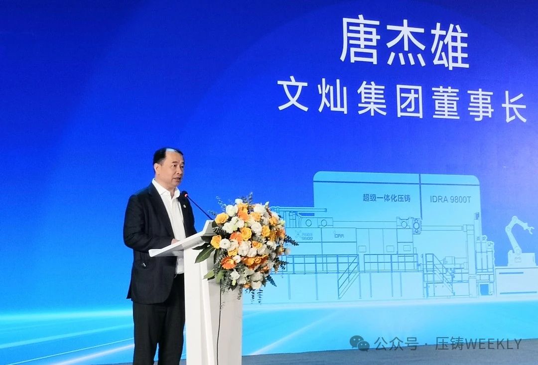 文燦集團(tuán)董事長唐杰雄致辭 文燦集團(tuán)在重慶擁有兩個(gè)已投產(chǎn)的壓鑄基地和一個(gè)在建的壓鑄基地,分別位于兩江新區(qū)、沙坪壩區(qū)和長壽區(qū)。其中,兩個(gè)已投產(chǎn)的壓鑄基地均設(shè)在賽力斯汽車的兩個(gè)超級工廠內(nèi)部,采用創(chuàng)新的“廠中廠”合作模式,主要為賽力斯汽車提供大型一體化壓鑄件和“三電系統(tǒng)”關(guān)鍵零部件。 此次活動(dòng)所在的文燦集團(tuán)壓鑄基地,主要為賽力斯汽車M9提供一體化壓鑄前艙、后地板和左右一體化側(cè)圍等四大鑄件的生產(chǎn)。據(jù)了解,文燦集團(tuán)為M9設(shè)計(jì)開發(fā)了10個(gè)車身結(jié)構(gòu)件和一體化大鑄件,總計(jì)替代了超過280個(gè)零部件,焊接點(diǎn)減少1440多個(gè),總計(jì)下降70%,充分體現(xiàn)了M9集成度高、性能強(qiáng)、輕量化顯著的優(yōu)勢。