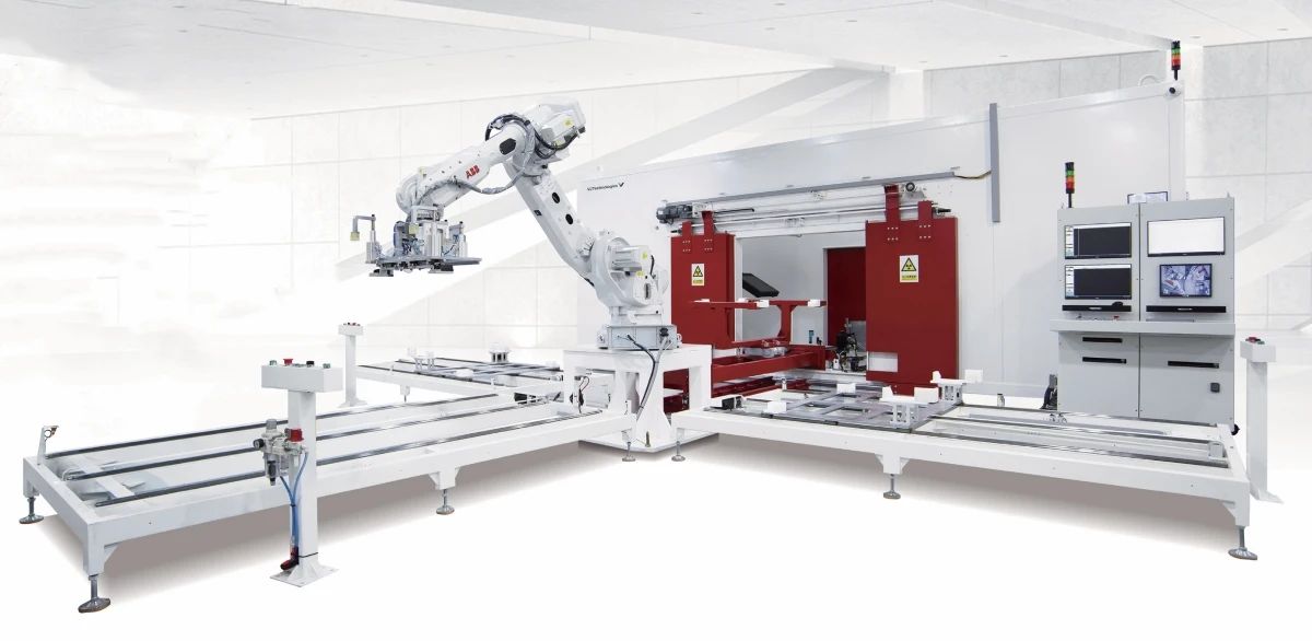 ![]() DRDCL 檢測系統 作為國際知名的 X 射線檢測解決方案提供商,偉杰科技(VJ Technologies)為國內某汽車零部件上市企業量身打造了 DRDCL 檢測系統。該系統的創新亮點在于其獨特的循環工作臺設計。通過將傳統單進單出傳輸模式升級為循環傳輸模式,這一設計不僅顯著提升了空間利用率,還大幅優化了檢測效率。 具體而言,DRDCL 檢測系統巧妙利用設備頂部空間,構建了一套立體循環的架空傳送系統。這一設計使工作臺能夠平穩地托著工件從一側進入鉛房進行X射線檢測,并在檢測完成后從另一側出來,良品和不良品分別通過機器人下料。相比傳統 X 射線檢測系統,DRDCL 的循環工作臺設計大幅減少了設備占地面積,僅需在一側設置上下料機器人,即可實現全自動的生產,從而實現了更緊湊高效的空間布局。 在檢測效率方面,DRDCL 系統同樣表現出色。其循環工作臺設計支持鑄件檢測、上料和下料同步進行,鑄件流轉更加順暢,等待時間顯著減少,整體檢測效率得以大幅提升。此次推出的 DRDCL 檢測系統,憑借其創新的循環工作臺設計,不僅解決了傳統檢測系統占地面積大、效率低的問題,更為鑄件 X 射線檢測行業提供了全新的解決方案。 全方位無損檢測方案滿足各領域應用需求 偉杰科技的產品線涵蓋了全方位的無損檢測方案,滿足各領域應用需求。其產品包括 RIX 轉盤式檢測系統、MRIX 轉盤式檢測系統、托盤通過式檢測系統、DRDC 檢測系統、C-Arm 五軸式全能檢測系統、VedaCT 高精密型工業 CT 和 ValuCT 緊湊型工業 CT 等。這些系統不僅滿足了不同行業對檢測精度和效率的多樣化需求,也充分體現了偉杰科技在 X 射線檢測技術領域的深厚積累。 RIX系統以多規格適配性和高效的生產效率見長,適用于轉向節、副車架等各類尺寸工件的檢測。MRIX 系統通過雙工位設計,實現了鉛房內部檢測與外部上下料的同步操作,特別適合超大工件的高效率檢測。