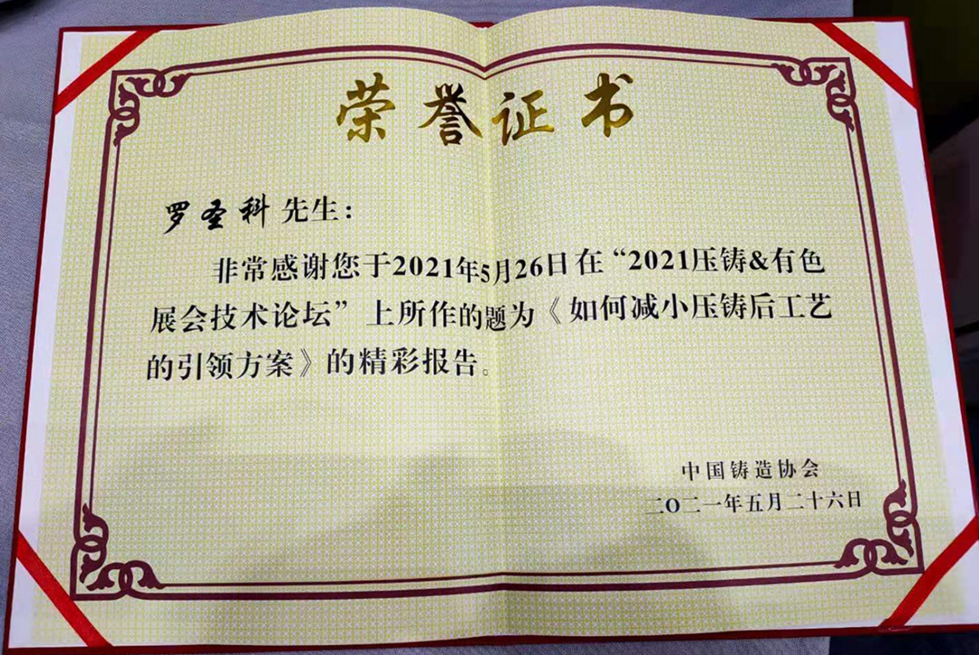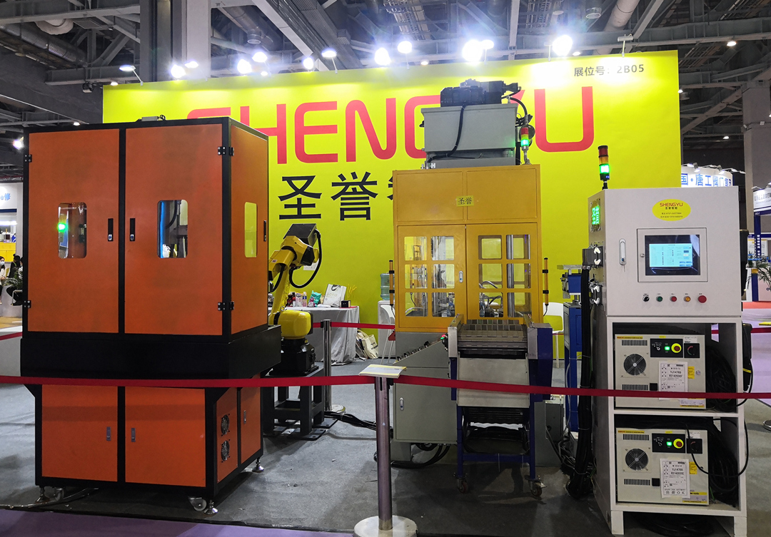 ![]() 圣譽(yù)智能參展團(tuán)隊(duì),中為公司董事長劉繼文先生、左二為總經(jīng)理羅圣科先生 2021年5月28日,為期三天的“2021中國國際鑄博會(huì)暨壓鑄展”,在國家會(huì)展中心(上海)閉幕。壓鑄及后道加工自動(dòng)化設(shè)備及整體解決方案提供商--廣東圣譽(yù)智能科技有限公司(“圣譽(yù)智能”)首次參加華東地區(qū)專業(yè)展會(huì)。此次展會(huì),圣譽(yù)智能現(xiàn)場展示了壓鑄后道加工自動(dòng)化線及解決方案。 據(jù)介紹,圣譽(yù)智能此次展示壓鑄后處理解決方案,由多工作臺(tái)鉆孔攻牙機(jī)、油壓切邊機(jī)、兩臺(tái)六軸關(guān)節(jié)機(jī)器人組成。該后道處理自動(dòng)化系統(tǒng),執(zhí)行取件、水冷、鉆孔、攻牙、精切等工序,完工即可出鑄件成品。多工作臺(tái)鉆孔攻牙機(jī)、油壓切邊機(jī)均為圣譽(yù)智能自行研制,可實(shí)現(xiàn)中小壓鑄件的批量化、高效率的后處理生產(chǎn)。