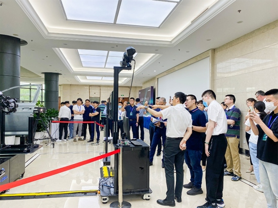 為了讓參會人員深度體驗最新產品與技術,現場還設立了專門的產品交流體驗展覽區,展出了重磅新品TrackScan-Sharp、自動化王牌標品AM-CELL C200、桌面級自動化檢測平臺AM-DESK和一系列手持式設備與最新行業應用解決方案,讓與會者親身感受到了三維數字化技術的創新力量。 全新發布的TrackScan-Sharp是思看智能化產品方向的典型代表,創新性將邊緣計算融入智能光學跟蹤器,配備2500萬像素的高分辨率相機,跟蹤范圍達到前所未有的49m³,TrackScan-Sharp在現場表現的超遠跟蹤距離吸引了一陣陣矚目和歡呼。