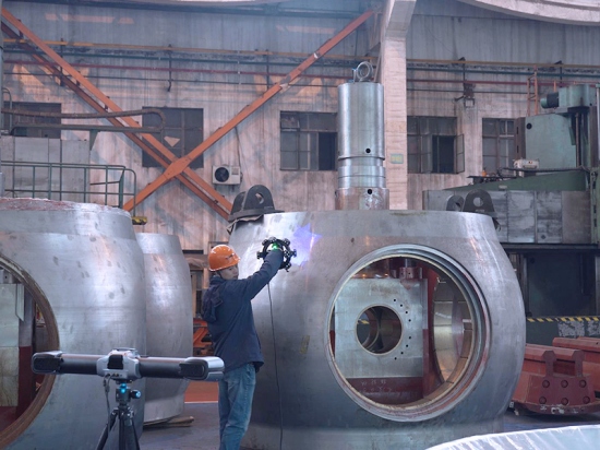 東芝水電設(shè)備(杭州)有限公司總監(jiān)佐藤先生評價(jià)道: 思看科技的TrackScan-Sharp,通過光學(xué)跟蹤的方式,不需要在工件表面貼點(diǎn),就可以輕松獲得工件表面的三維數(shù)據(jù)。我印象特別深刻的是TrackScan-Sharp的跟蹤距離,長達(dá)6m,在同類產(chǎn)品中是相當(dāng)出色的。因?yàn)樗臏y量范圍很大,在測量過程中,不需要多次移動(dòng)跟蹤器,就能完成整個(gè)工件的掃描。 TrackScan-Sharp跟蹤式三維掃描儀輕巧便攜,現(xiàn)場布置也很簡單。雖然工廠的車間環(huán)境比較復(fù)雜,但TrackScan-Sharp占地面積小,對空間要求不高,環(huán)境適應(yīng)性強(qiáng),完全可以勝任在車間現(xiàn)場的掃描工作。 TrackScan-Sharp能滿足我們對產(chǎn)品質(zhì)量控制的需求,幫助我們將產(chǎn)品更快交付到客戶手中。 思看科技憑借行業(yè)領(lǐng)先的3D掃描技術(shù),幫助客戶實(shí)現(xiàn)生產(chǎn)效益最大化,保障水電機(jī)組質(zhì)量符合嚴(yán)格的質(zhì)量控制標(biāo)準(zhǔn)的同時(shí),也極大提升測量效率,為客戶更大容量、更高轉(zhuǎn)速、更高效率的水電設(shè)備生產(chǎn)制造保駕護(hù)航。 02產(chǎn)品優(yōu)勢 大范圍跟蹤丨自由測量不受限 配備高性能工業(yè)相機(jī),2500萬超高像素,49m³跟蹤體積,在跟蹤式掃描設(shè)備中清晰度更高、測量范圍更廣,輕松實(shí)現(xiàn)遠(yuǎn)距離、大范圍、一站式三維數(shù)據(jù)采集。