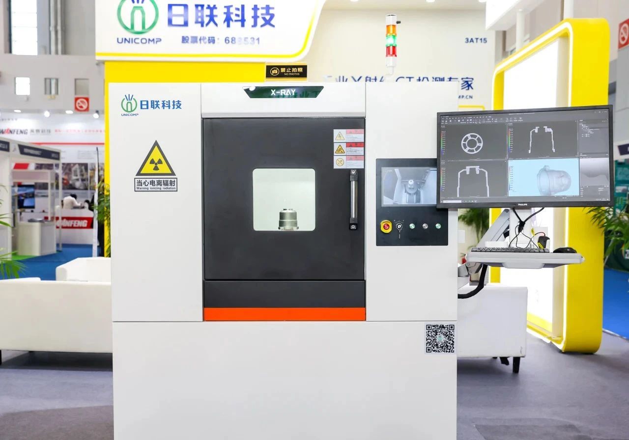 ![]() 日聯科技參展團隊 2024年18-20日,為期三天的“2024寧波國際鑄造及壓鑄展”在寧波國際會展中心閉幕。本屆展會吸引了鑄造及壓鑄產業鏈上下游的眾多企業,現場展示了各自在領域內的創新產品和技術解決方案。日聯科技、斯托泰科中國、重慶凱博分別展示了在鑄件缺陷AI檢測、一體化壓鑄熔化/保溫及定量給料、CNC去毛刺等方面的創新解決方案。 在“2024寧波國際鑄造及壓鑄展”上,日聯科技攜UNCT3100工業CT檢測裝備精彩亮相,展現了公司在技術創新和產品升級方面的最新成果。 UNCT3100工業CT檢測裝備不僅具備X射線數字成像功能,還擁有計算機斷層掃描功能,能實時呈現二維圖像并構建三維模型,從而實現對被檢物體內部結構、組成、材質及缺陷的精準分析。該設備利用AI智能算法,擁有廣泛的檢測范圍和對復雜結構的深度分析能力,確保了檢測結果的準確性和可靠性。