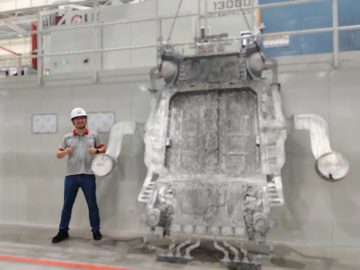 肖榕總工在超大型壓鑄件旁留影 安全守護(hù),高性能保障 在高性能保障方面,奇瑞汽車采用了高強(qiáng)度、高流動(dòng)性的新材料,使屈服強(qiáng)度和抗拉強(qiáng)度分別提升至≥150MPa和≥300MPa,分別比目前行業(yè)的高出24%和22%。此外,高動(dòng)態(tài)壓射系統(tǒng)還進(jìn)一步提升了材料的延伸率,達(dá)到44%的顯著提升。 降本增效,高集成設(shè)計(jì) 該技術(shù)還實(shí)現(xiàn)了高集成設(shè)計(jì)。通過優(yōu)化零件結(jié)構(gòu),奇瑞汽車將原本需要150多個(gè)零件組成的部件集成為一個(gè)整體。這一設(shè)計(jì)不僅大幅提升了零件的扭轉(zhuǎn)剛度,還顯著降低了成本,實(shí)現(xiàn)了22%的成本下降。同時(shí),車身重量也減輕了20%,精度提高了15%,為汽車的輕量化、高效化提供了有力支持。