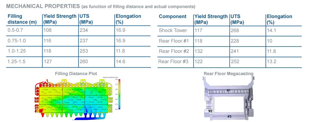 帥翼馳集團(tuán)新材料事業(yè)部總經(jīng)理 符文濤 作為國內(nèi)低碳鋁合金開發(fā)生產(chǎn)的頭部企業(yè),帥翼馳新材料集團(tuán)有限公司于2016年開始研發(fā)和推廣適用于大型一體化壓鑄的免熱處理合金材料,2019年開始驗證應(yīng)用免熱處理材料。目前,該公司牌號為C611的免熱處理材料已實現(xiàn)批量生產(chǎn),被成功應(yīng)用于國內(nèi)頭部新能源汽車品牌的車身后地板及前倉等零部件上。 帥翼馳集團(tuán)新材料事業(yè)部總經(jīng)理符文濤先生表示:“免熱處理鋁合金材料是一體化壓鑄技術(shù)成功的關(guān)鍵,我們開發(fā)的C611是一款定制材料,其可達(dá)成的性能范圍較寬,可以根據(jù)客戶需求做定制開發(fā),并能提供相應(yīng)的性能數(shù)據(jù),材料失效卡片,模流分析數(shù)據(jù)卡片,與材料相關(guān)鑄造工藝參數(shù)。因此,我們可以提供材料及其相關(guān)的工藝方案。” C611免熱處理材料性能參數(shù)如下: