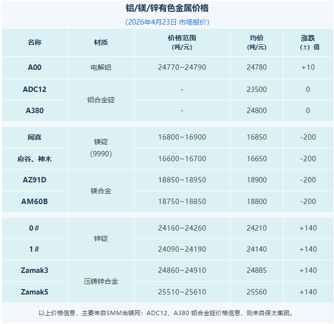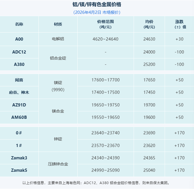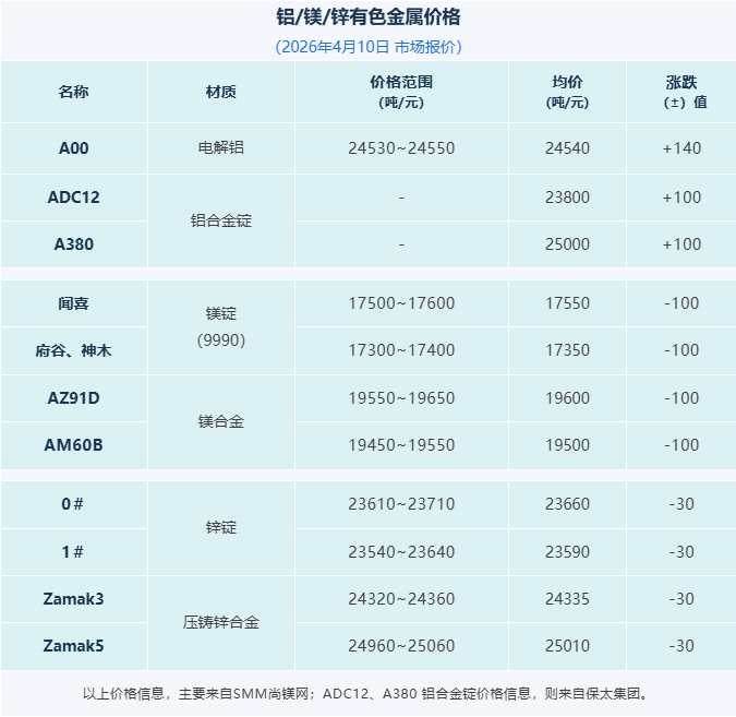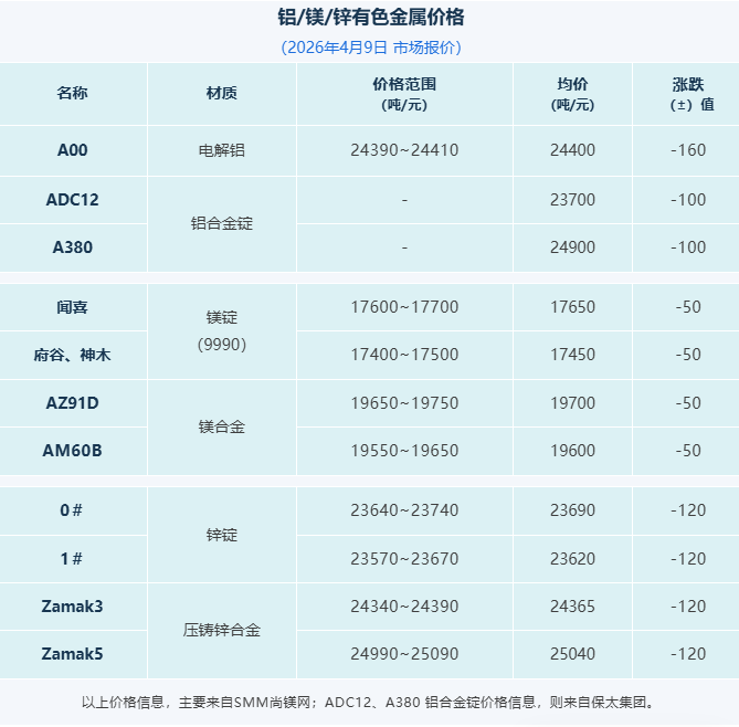 智界V9全球首發電磁熱控壓鑄技術;廣東鴻圖鎂合金壓鑄領域技術儲備良好;廣元應和鋁合金汽車零部件項目預計5月試產;中孚實業全資三級子公司擬投建設再生鋁合金項目。