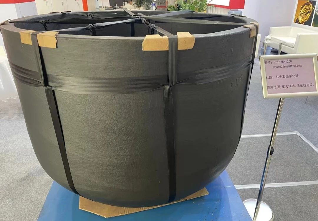 HU1525H1200 黏土石墨碳化硅坩堝 此次展出的 HU1525H1200 黏土石墨碳化硅坩堝,高度1200mm,容量3.5噸。此超大型坩堝為嘉興皓特多年技術(shù)沉淀而開發(fā)的產(chǎn)品。隨著汽車零部件大型化、一體化鋁鑄造的趨勢。大型鑄件的連續(xù)生產(chǎn),需要更大的坩堝作為載體來實現(xiàn)。這款大容量坩堝能為鑄件生產(chǎn)提供持續(xù)的高品質(zhì)的鋁液,不僅使用壽命長,還能提升產(chǎn)品良品率。該款坩堝主要應(yīng)用于重力鑄造、低壓鑄造等工藝生產(chǎn)的汽車零部件領(lǐng)域。