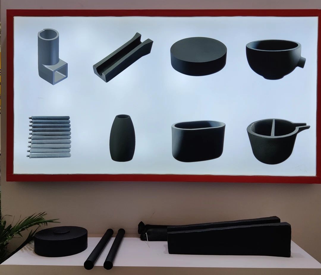 另外,本次展會上,嘉興皓特還展出了應(yīng)用于銅合金鑄造坩堝、金銀等貴金屬熔煉坩堝以及氧化鋅冶煉坩堝。除坩堝產(chǎn)品,現(xiàn)場還展示了應(yīng)用有色金屬熔煉的各類耗材產(chǎn)品。