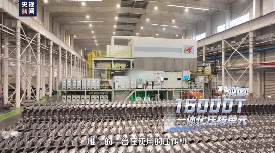圖源:央視新聞 資料顯示,廣東鴻圖是全球知名鋁合金壓鑄汽車(chē)零部件龍頭企業(yè),其生產(chǎn)基地遍布華南、華中、華東、華北和西部地區(qū),目前擁有16家生產(chǎn)基地。在大型一體化壓鑄方面,廣東鴻圖擁有6800T、7000T、12000T、16000T等噸位型號(hào)的超大型壓鑄單元。 |