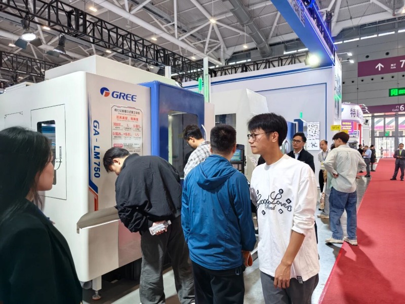 (智能免示教六軸機器人弧焊工作站) 掌握核心科技,多領(lǐng)域協(xié)同開放 除了前沿的焊接機器人,格力也展示了其在通用數(shù)控機床領(lǐng)域的硬核實力。本次展出的GA-UV1050與GA-LM750,延續(xù)了格力設(shè)備高剛性、高精度的優(yōu)良傳統(tǒng),能夠滿足從大型結(jié)構(gòu)件到精密零件的多樣化加工需求,高剛性立式加工中心GA-UV1050應(yīng)用于新能源汽車輪轂、電機端蓋、保險杠、裝飾條蓋,床身采用高剛性的材料,可有效減少振動帶來的加工誤差,主軸箱系統(tǒng)在C字型結(jié)構(gòu)的基礎(chǔ)上,增加力矩平衡技術(shù)保證整機結(jié)構(gòu)剛性,最高轉(zhuǎn)速30000rpm。