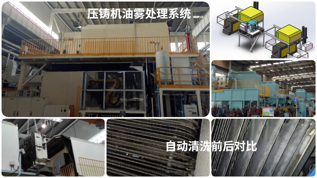 熔爐除塵及在線監(jiān)測(cè)系統(tǒng) 壓鑄領(lǐng)域煙霧凈化設(shè)備全面升級(jí) 壓鑄領(lǐng)域排出污染物統(tǒng)稱“壓鑄機(jī)煙霧”,其來源于脫模劑和沖頭油,脫模劑經(jīng)過高壓噴射和高溫分解,產(chǎn)生大量的油霧顆粒和有機(jī)物,沖頭油經(jīng)過燃燒產(chǎn)生大量具有一定腐蝕性的黑色煙氣。譚文儉先生說:“之前不少企業(yè)的壓鑄機(jī)煙氣處于四處冒煙的無組織排放狀態(tài),現(xiàn)在按環(huán)保新標(biāo)準(zhǔn)要求,必須進(jìn)行收集處理。治理壓鑄機(jī)煙霧在早十年還不成熟,存在收集不完全(約80%)、凈化效率低(約70%),并且維護(hù)成本高,存在防火安全隱患。現(xiàn)在我們產(chǎn)品技術(shù)全面升級(jí),主要表現(xiàn)在集煙罩集煙效率高(95%以上),并適合多樣性的滑動(dòng)技術(shù),高效率(90%以上)無耗材靜電過濾技術(shù),一鍵操作式清洗技術(shù)和末端除臭技術(shù),加上適合遠(yuǎn)程供貨的標(biāo)準(zhǔn)模塊化集煙罩,一個(gè)一個(gè)技術(shù)加以攻克,產(chǎn)品從500t到3400t全覆蓋,為批量化生產(chǎn)打下基礎(chǔ)”。