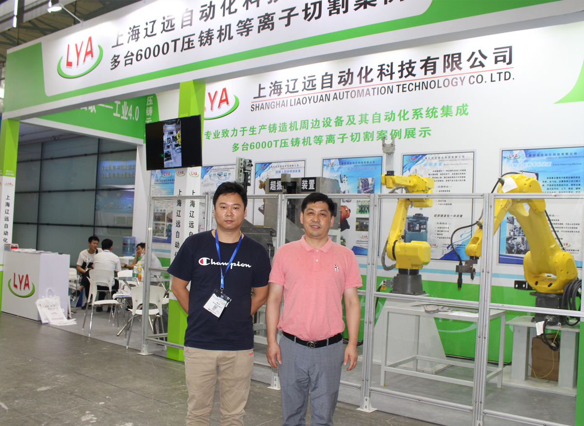 上海遼遠總經理胡培民先生(右)與公司技術工程師 在日前落幕的“2021上海國際壓鑄展”上,上海遼遠自動化科技有限公司(“遼遠自動化”)現場展示了超振裝置實物、六軸取件機器人以及六軸等離子切割裝置,滿足了壓鑄企業壓鑄自動化設備多樣化的需求。