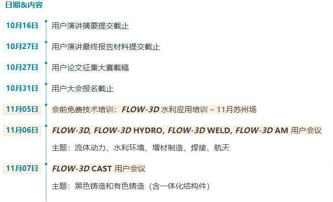 邀請函 INVITATION 2025 FLOW-3D 中國用戶大會將于11月6 - 7日在蘇州中茵皇冠假日酒店舉行。用戶大會是 FLOW-3D 用戶年度相聚和分享交流信息的重要平臺。會議由 FLOW-3D 美國總部和中國團隊為用戶帶來最新的產(chǎn)品發(fā)展方向,產(chǎn)品應用以及新功能等內(nèi)容,以及 FLOW-3D 軟件用戶群在各領域的應用成果和軟件使用經(jīng)驗分享等。